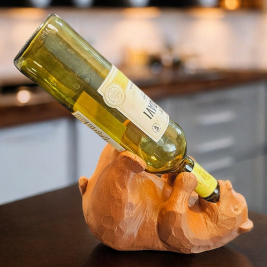 Rustic Carved-Look 3D Printed Bear Wine Bottle Holder