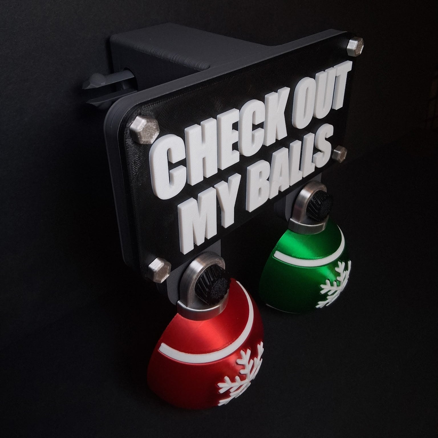 Hilarious Trailer Hitch Decoration with moving ornaments. Comes in two different hitch receptor sizes, 2x2 inches or 2.5x2.5 inches. It will come already assembled, NO ASSEMBLY REQUIRED!